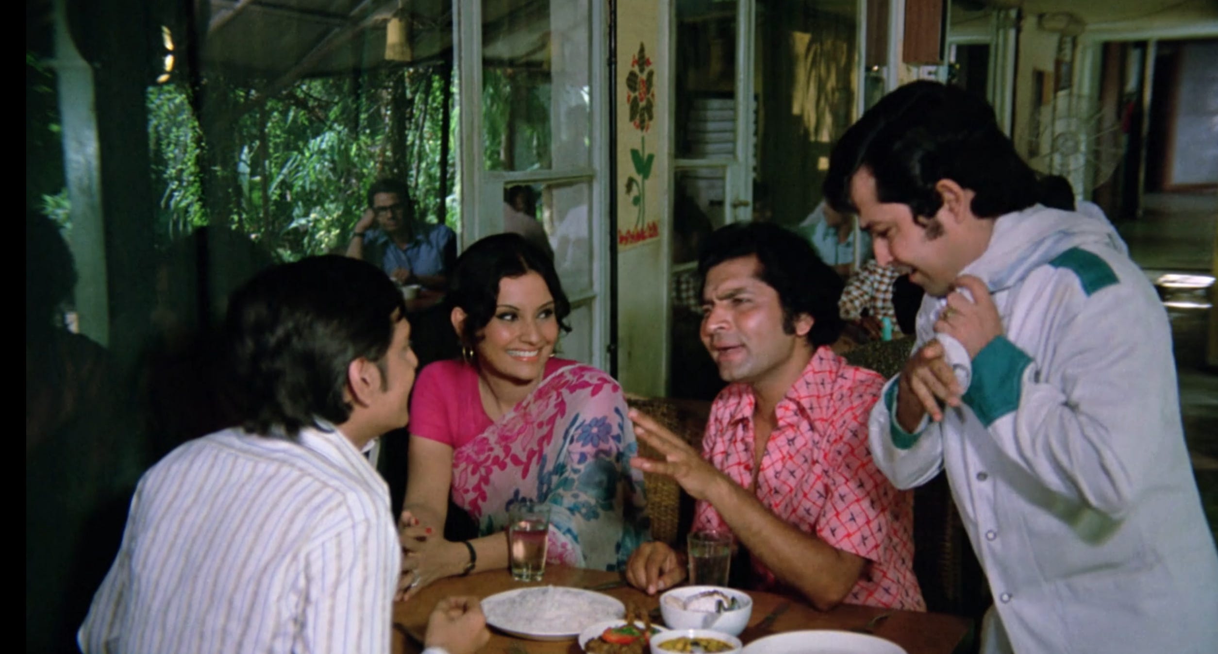 The ease and cockiness he brings to Nagesh, the heroine’s overbearing co-worker in Chhoti Si Baat (1976), who seems to outshine the timid hero, is a performance for the ages. The restaurant scene where he hijacks another man’s table, conversation, and even his menu card to order his signature ‘Chicken a la poos’ becomes cinematic shorthand for the cocky go-getters who glide through life without breaking a sweat.